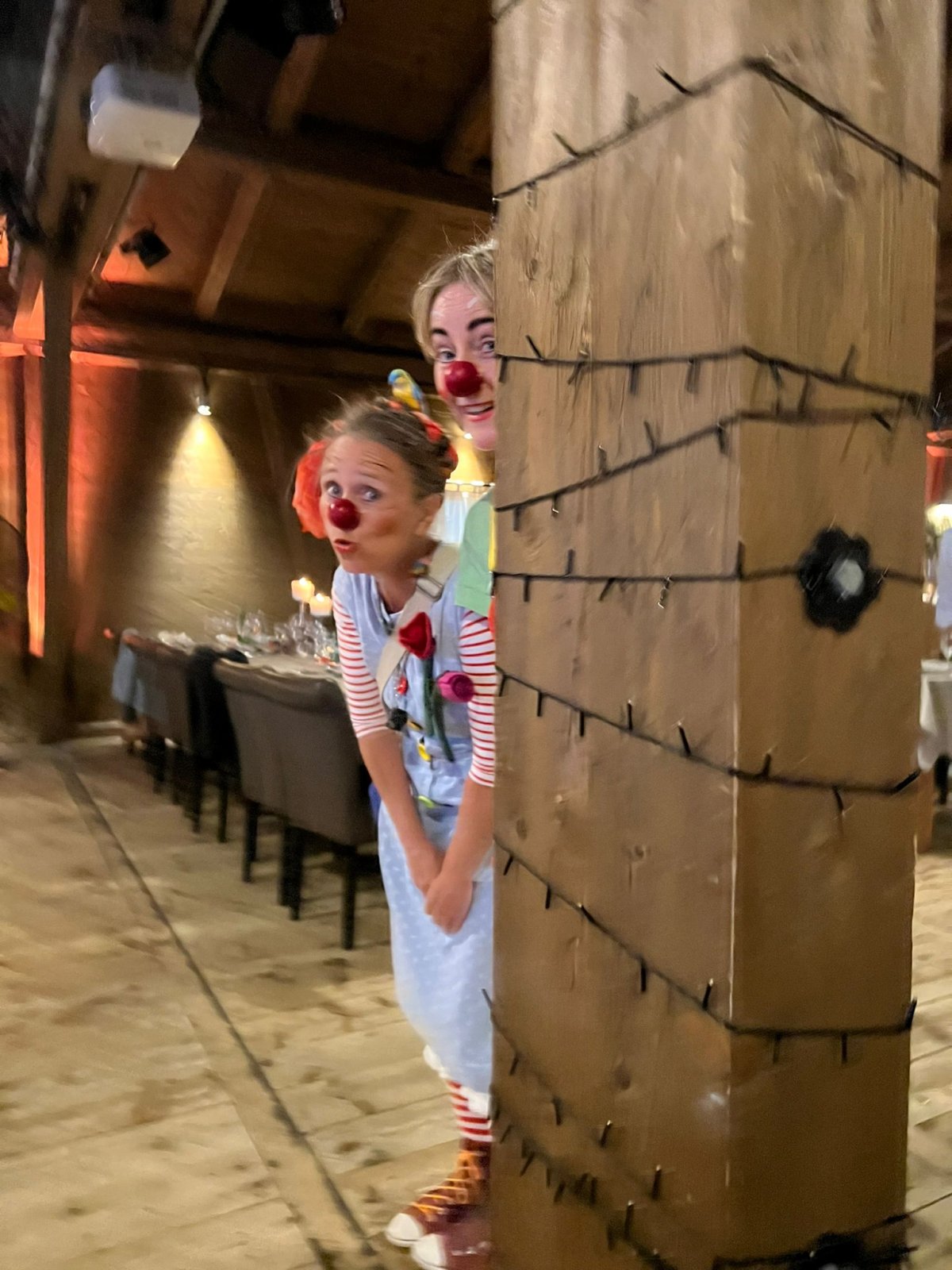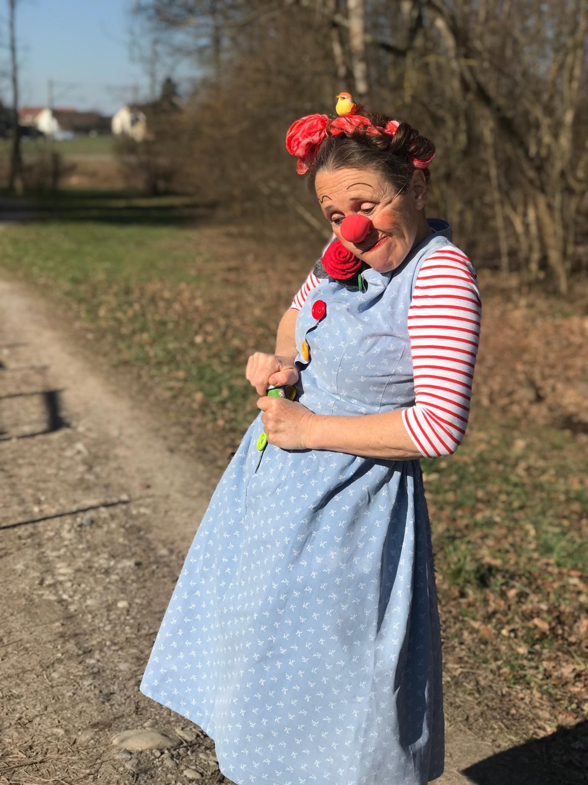 Die Clownin geht improvisierend in Kontakt mit den Gästen, nimmt aktuelles auf, erweitert-erheitert sowohl den Blick als auch die Stimmung und produziert kleine Darbietungen. Nach Absprache wird auf thematische Wünsche eingegangen. Je nach Grösse des Anlasses begleitet mich eine zweite Clownin.